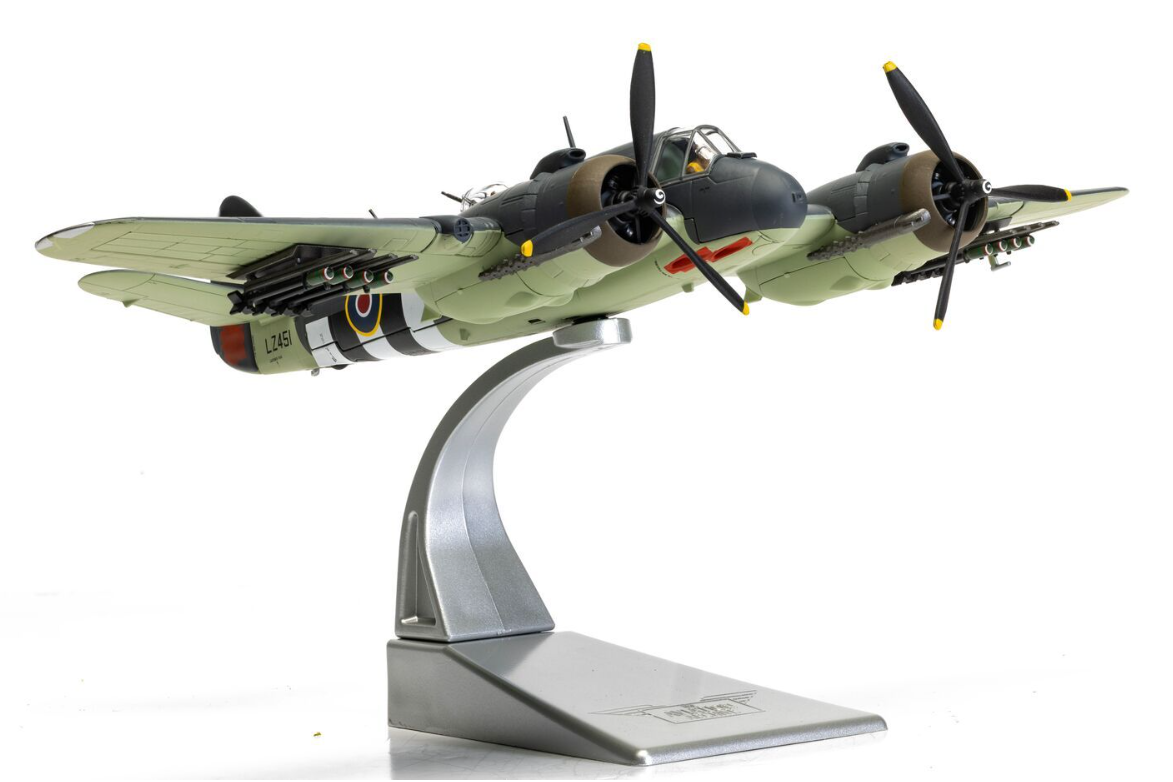 1:72 scale model, featuring eye-catching nose art, a display stand, optional undercarriage, and twin rotating propellers!